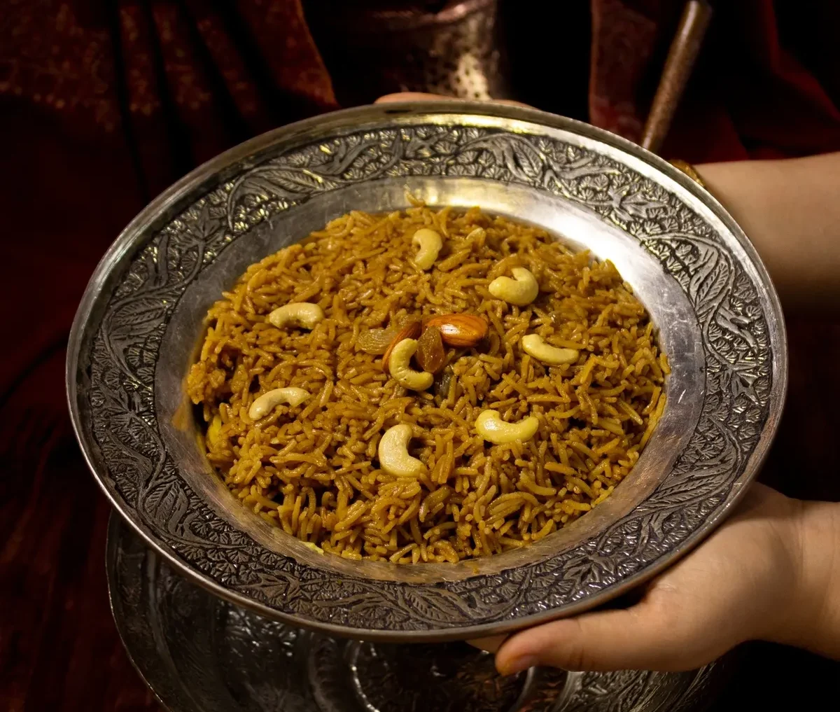 Kashmiri Pulao is packed with toasted nuts and warming spices for an aromatic rice dish that is mild and flavourful.